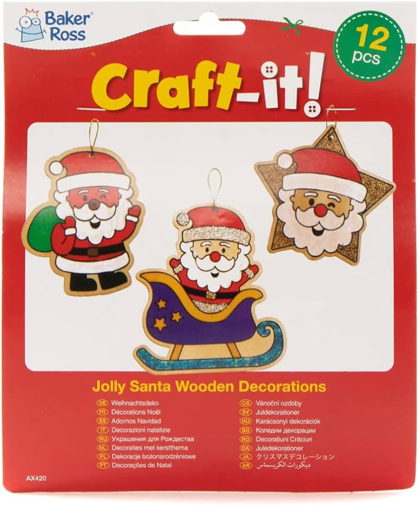Baker Ross AX420 Jolly Santa Wooden Decorations Pack of 12